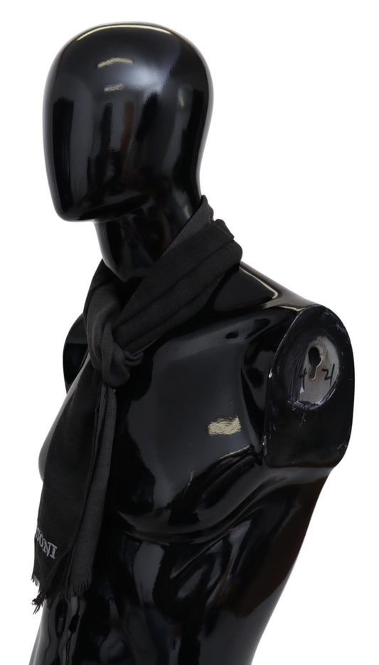 Black Wool Unisex Neck Wrap Shawl Fringes Logo Scarf