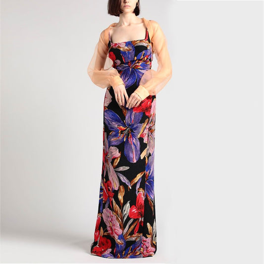 Multicolor Viscose Floral Print Women Jumpsuit Dress